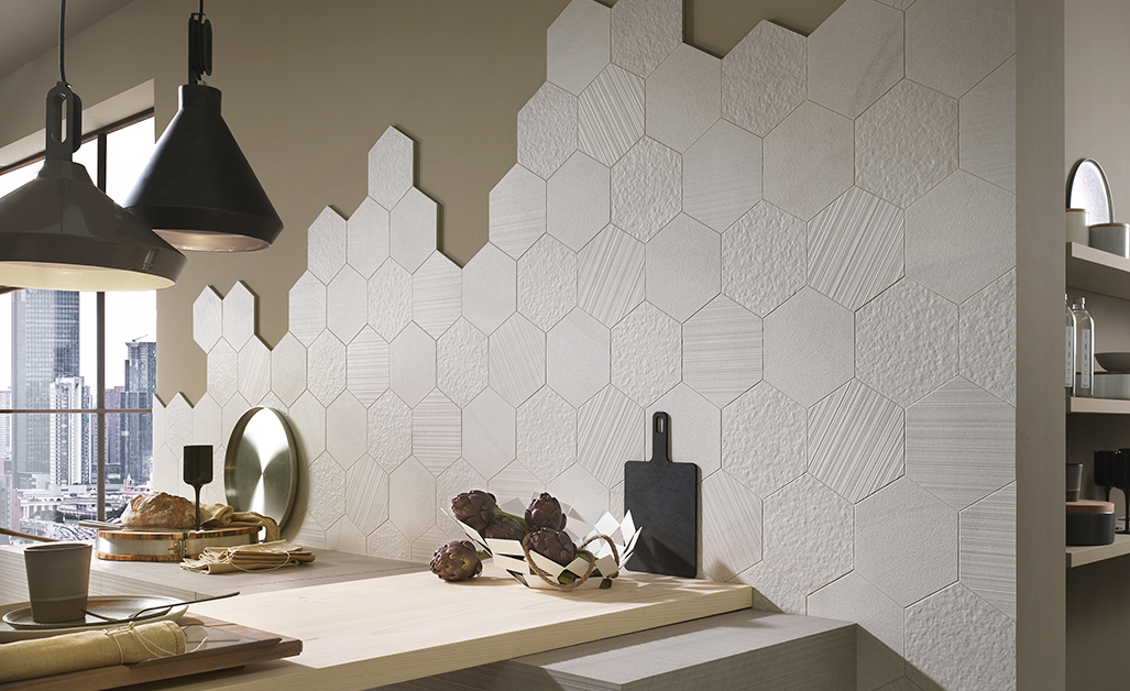 Auch die Oberflächenstrukturen der Hexagonfliesen bieten eine Bandbreite spannender Möglichkeiten, die einen Hingucker garantieren. Sie erzeugen wirkungsvolle Effekte in Kombination mit anderen Materialien oder einer anderen geometrischen Form. Der Materialmix funktioniert beispielsweise sehr gut mitKeramik, Kunststoff oder Oberflächenoptiken wie Naturstein oder Holz.